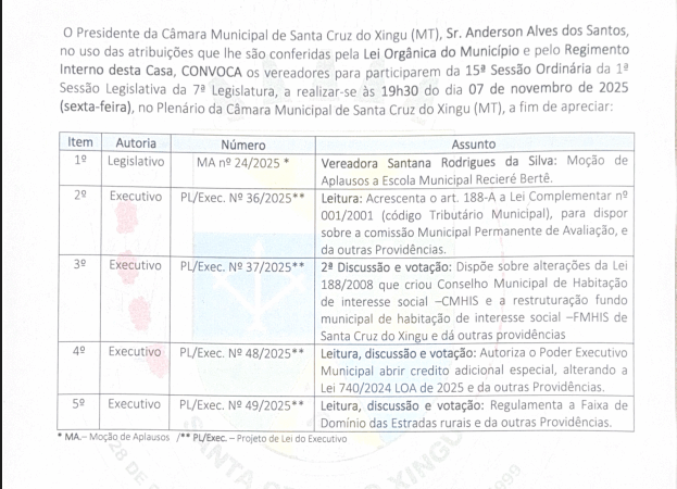 Edital de Convocação de Sessão Ordinária Nº 10/2025